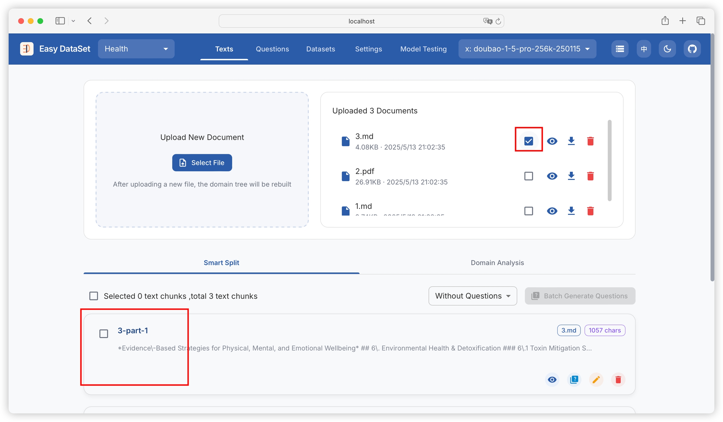 Note that there is no need to select a reasoning model (such as DeepSeek-R1) in this step. Selecting a normal question-answering model, such as Doupai or Qianwen, is sufficient. Reasoning models will not provide any advantages in this step and will slow down the processing speed.
