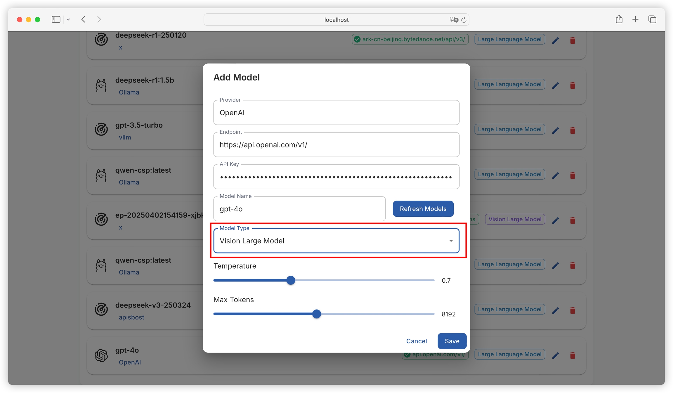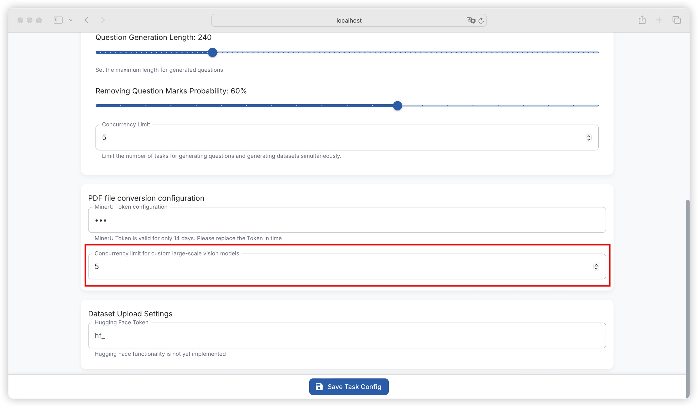 You can configure the maximum number of concurrent custom vision models and the maximum number of pages to process simultaneously through "Settings - Task Settings". The more concurrent models, the faster the processing speed, but please consider the concurrency limit of the model provider.