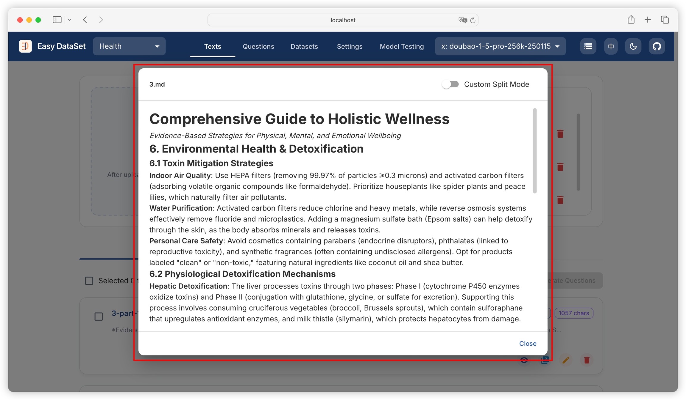 For more information on the principles of text segmentation and how to customize segmentation rules to adapt to different literature structures, please refer to the "Custom Segmentation" chapter.