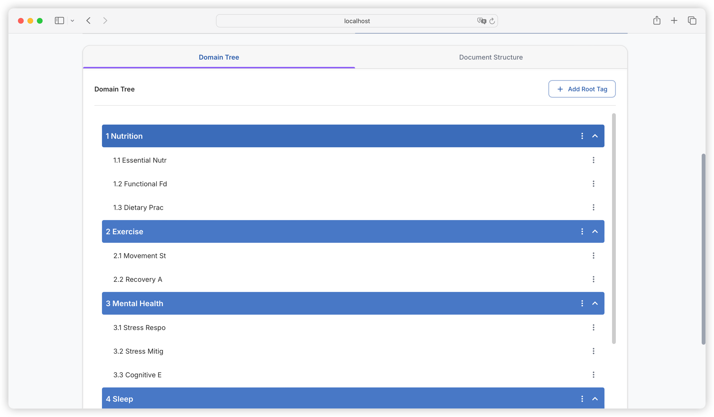 After text chunking is completed, the platform will call a large model to automatically establish a domain tag tree based on the literature data.