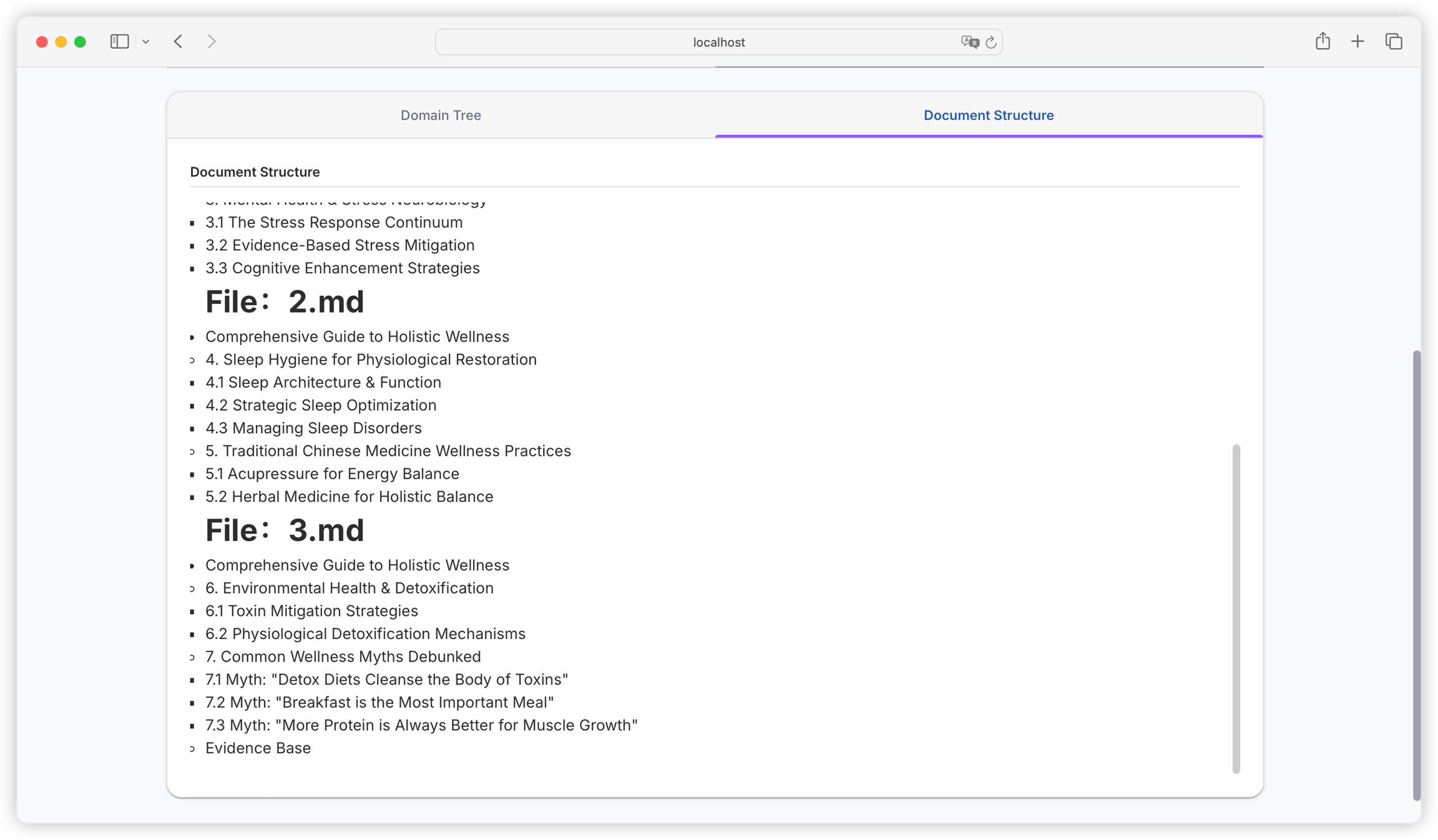 Switch to the Domain Tree tab, and you can see the domain tree intelligently analyzed by AI based on the literature, as well as the original directory extracted from the literature: