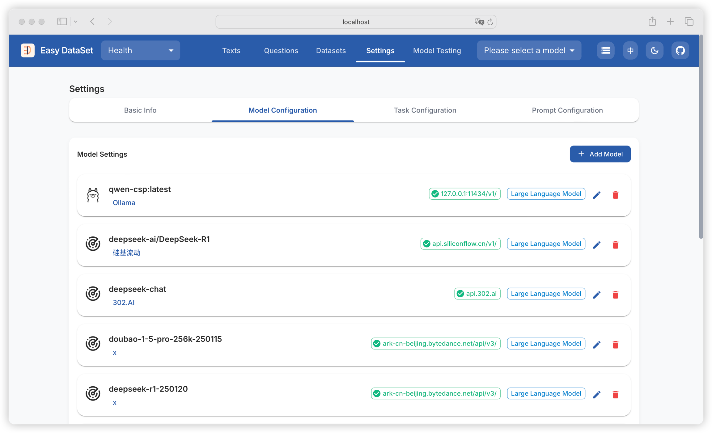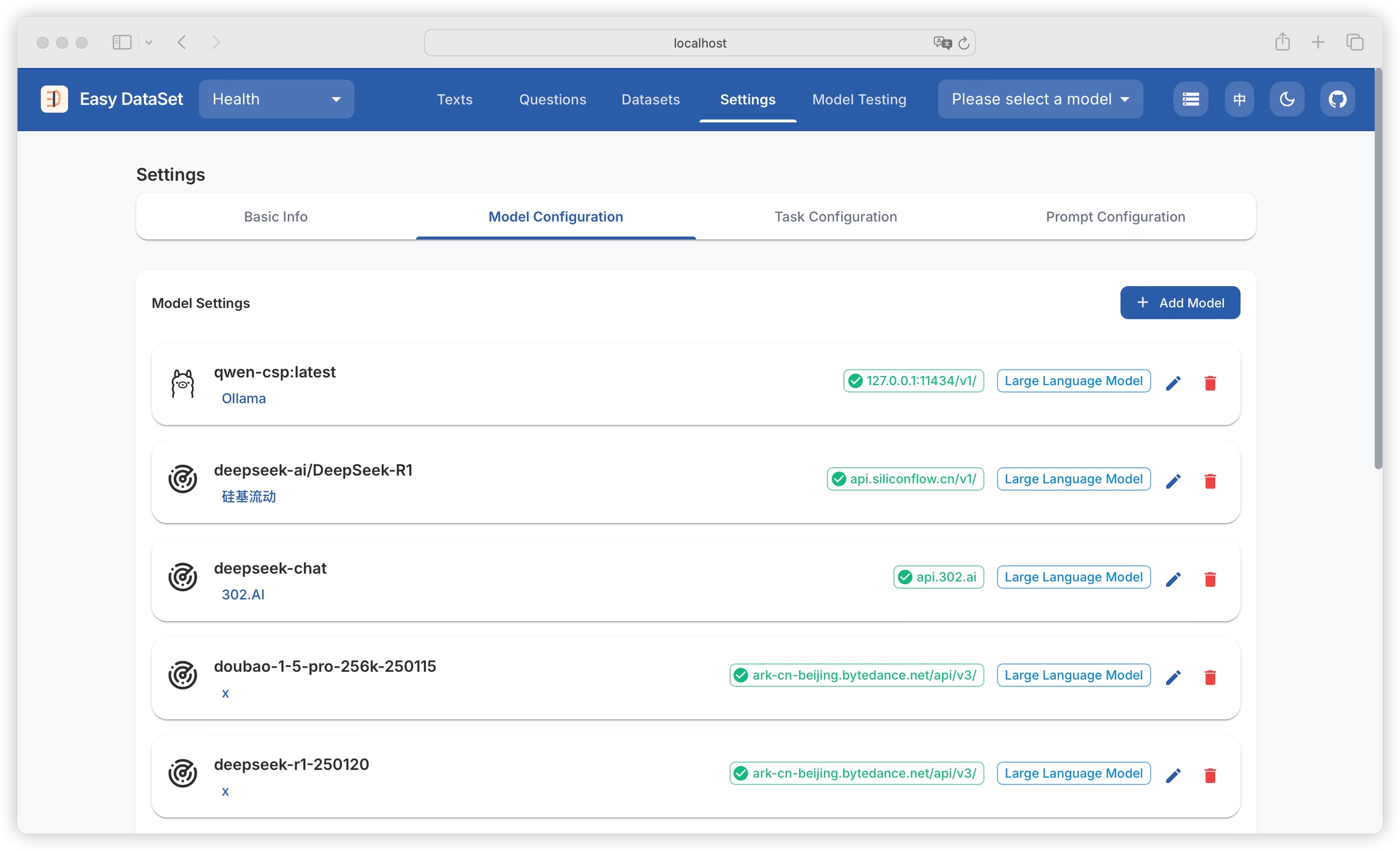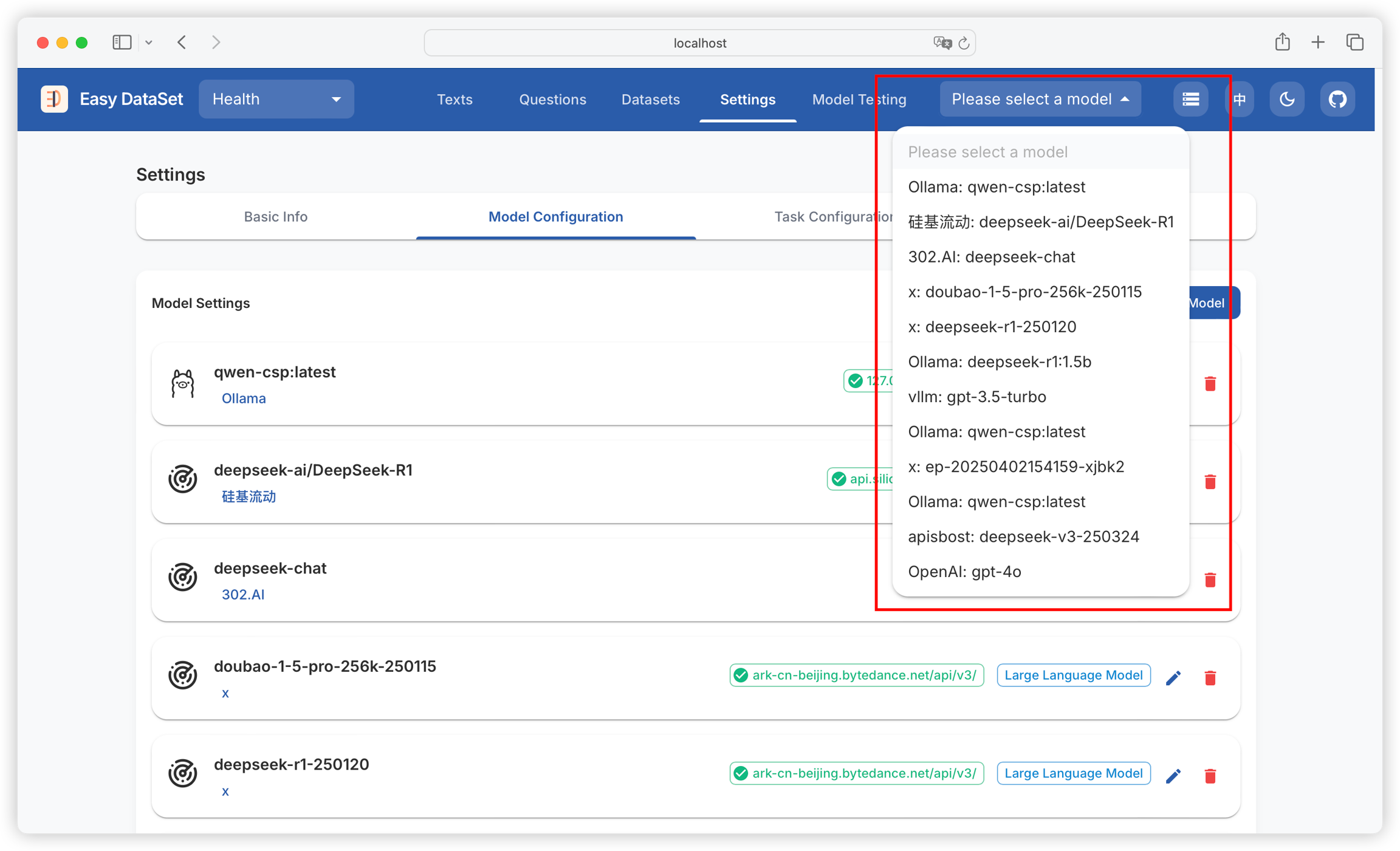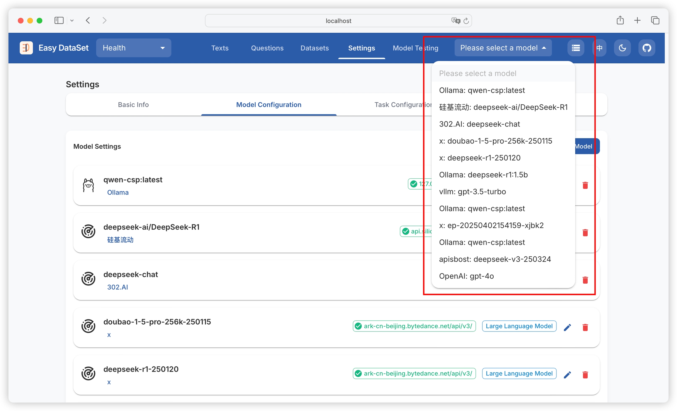 Supports configuring multiple models, which can be switched through the model dropdown box in the upper right corner: