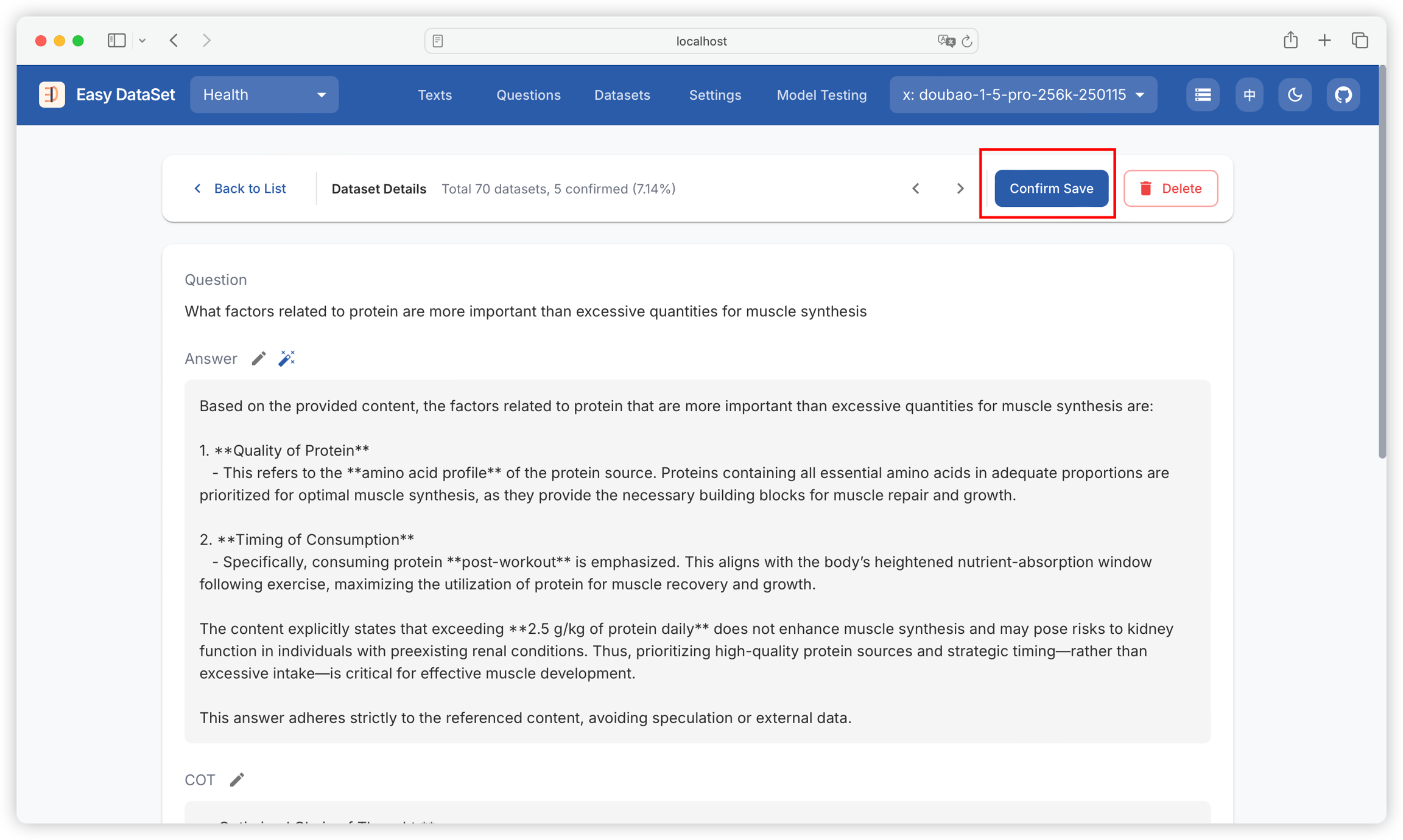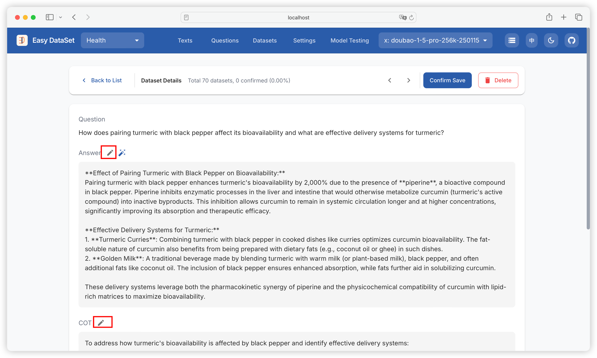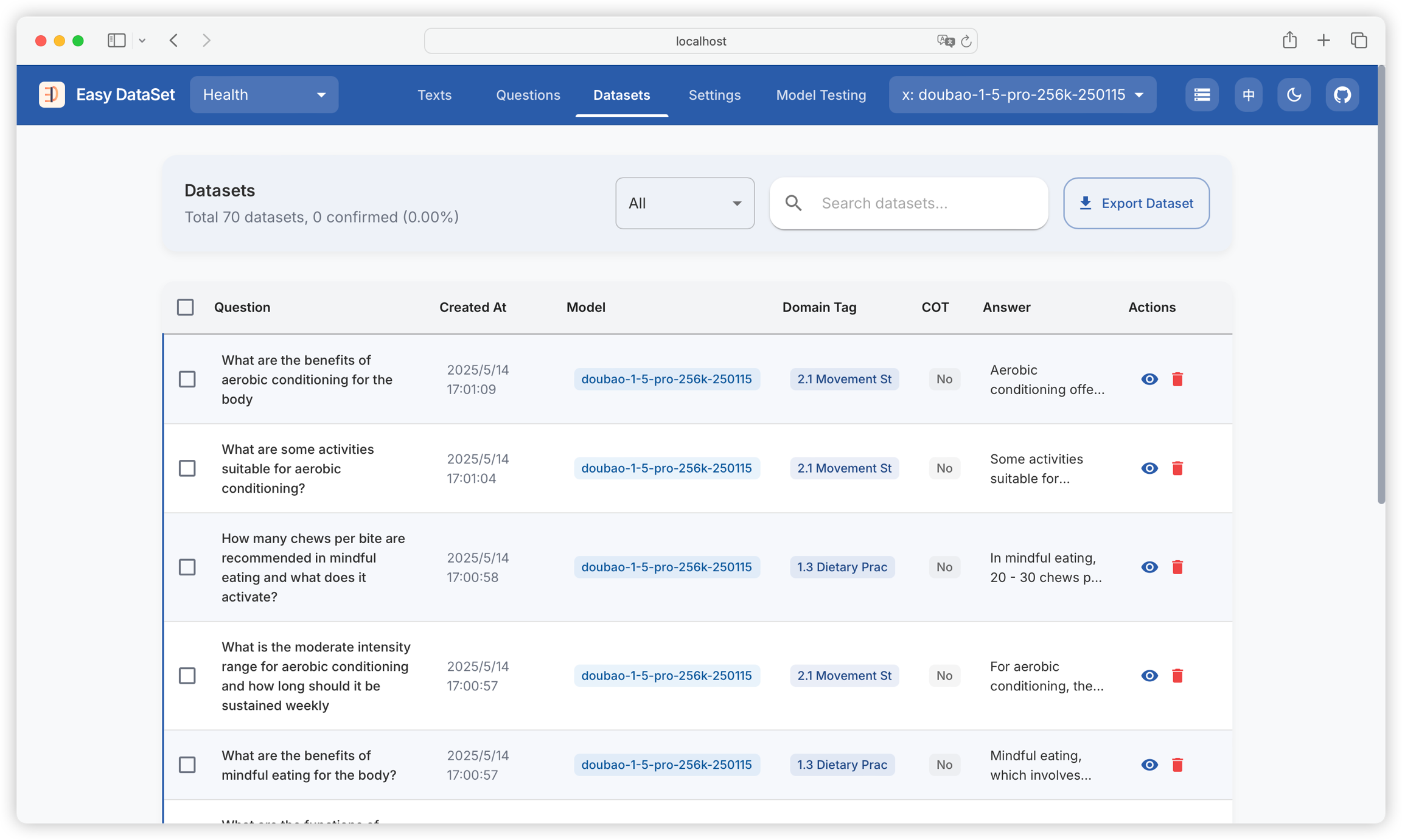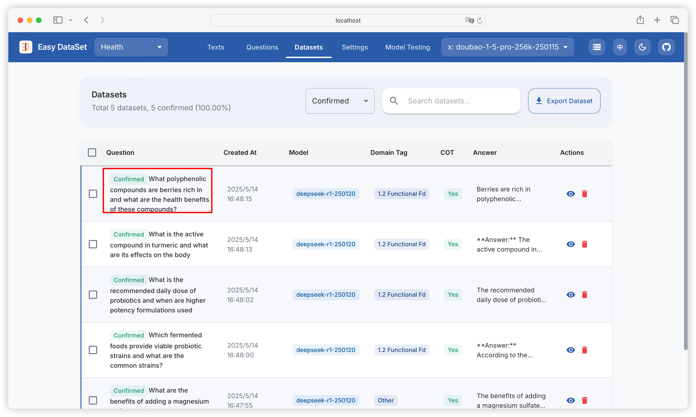 Confirm, filter, revise, and optimize generated datasets to ensure the final export meets requirements for high-quality datasets.