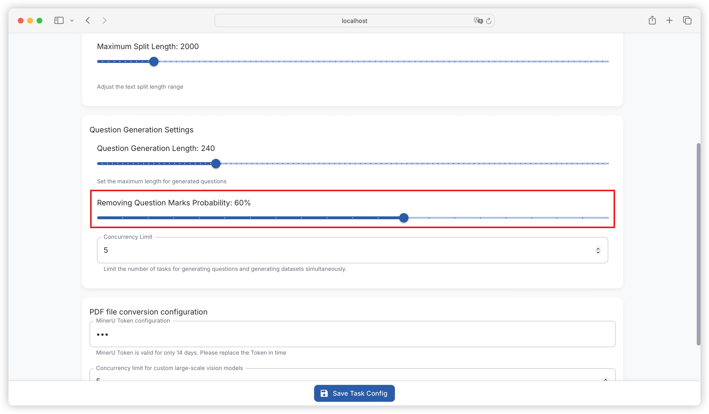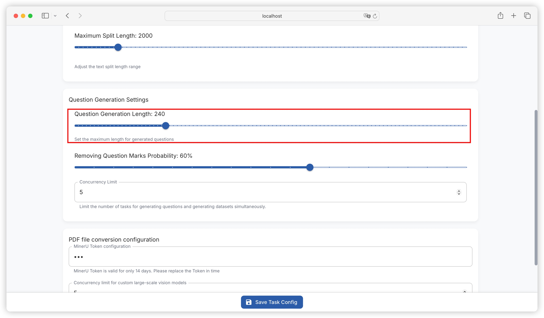 Question Generation Configuration